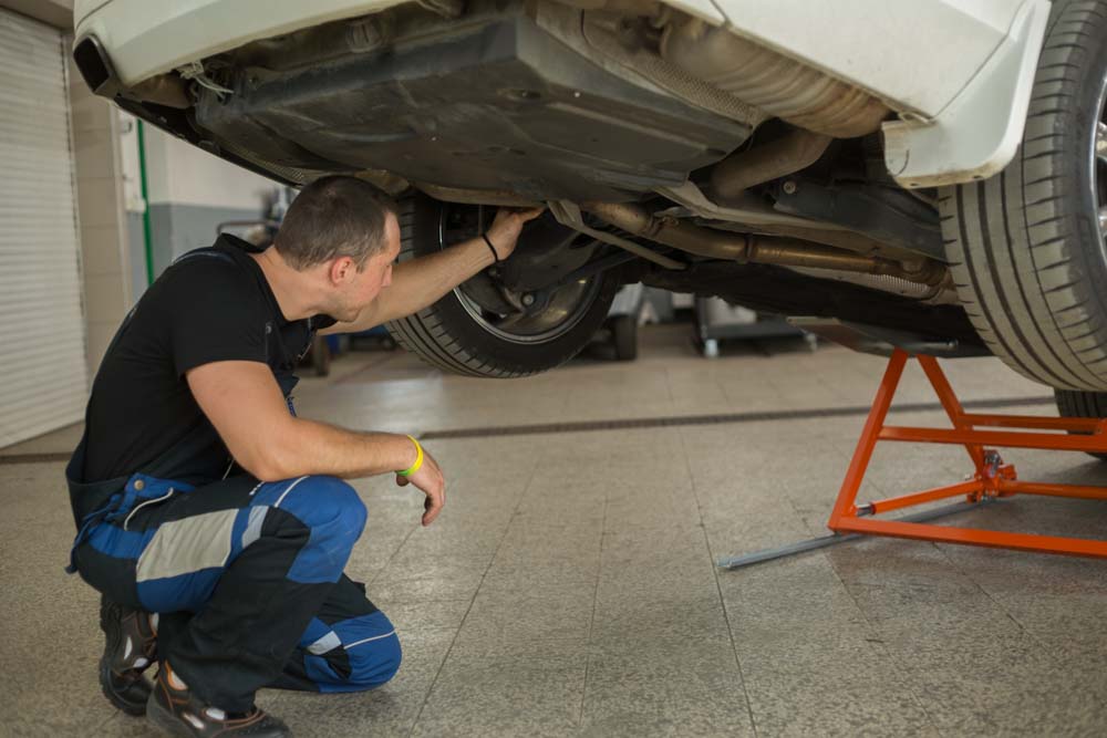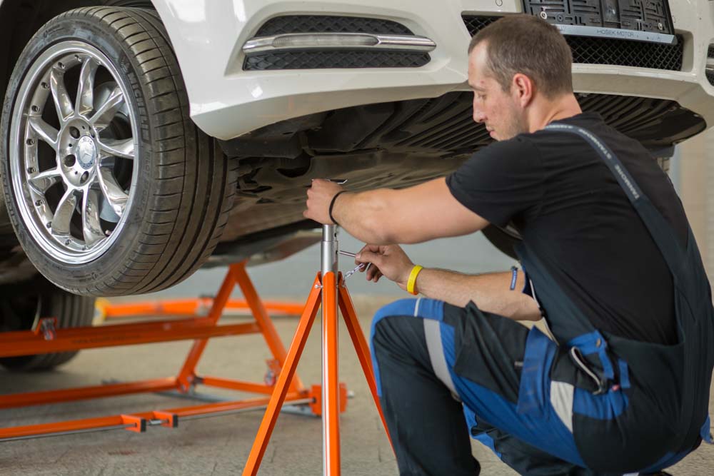 • Install a jack stand under the car. Always insert a jack stand to safely secure the car on the lift.