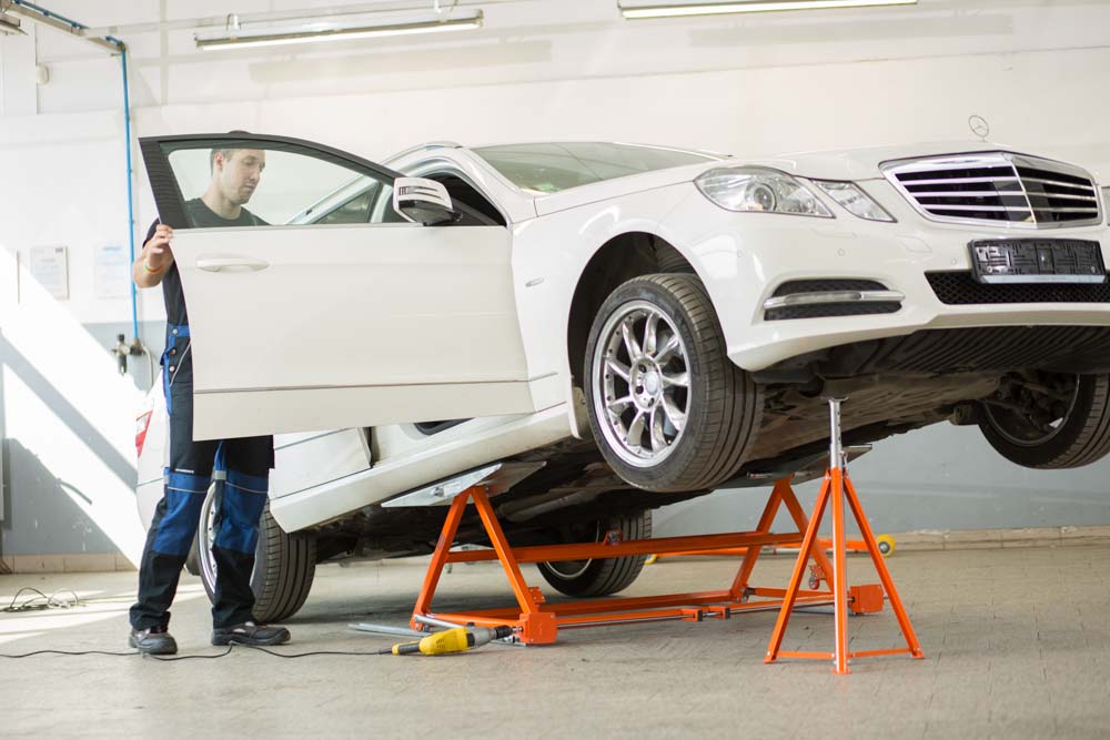 Once it’s lifted, the car can be tilted to the front or rear and secured, for a safe working height from any angle.